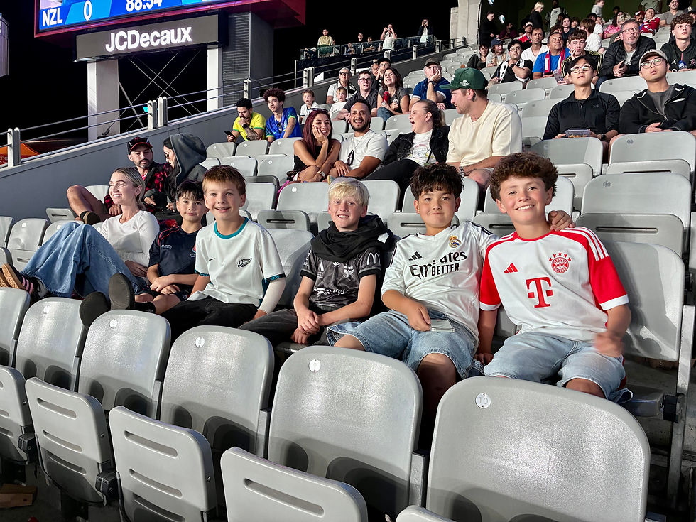 Just this weekend, the NZ national football team the All Whites played a friendly game against Finland, so the boys and I drove the 1 1/2 hours to Auckland to watch and have some fun being tourists in the city for a day. While Ike met up with a crew of his friends from school who were also there, Kobe played in the field-side kids area where they had set up a few bouncy house challenges while we parents could watch the game. New Zealand is the most kid friendly country I've every visited, and this game was no exception. The kids zone was free, supervised, and awesome, so Kobe had a blast while I could watch the game with ease.